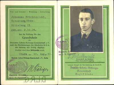 Daß auch während der Kriegszeit weiterhin Rettungsschwimmer ausgebildet wurden belegt dieser Grundschein-Ausweis, ausgestellt im Jahre 1941.