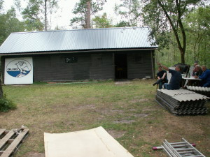 An der Blockhütte wurde eine Garage für das Boot angebaut und das THW baute einen neuen Steg mit Turm.