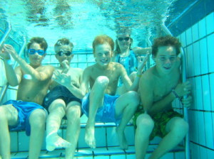 Improvisation war oft vonnöten: mit einer Holzstange leistete er Hilfestellung bei der Schwimmausbildung, für die Tieftauchübungen bastelte er einen Holzkasten, den er mit Steinen füllte.